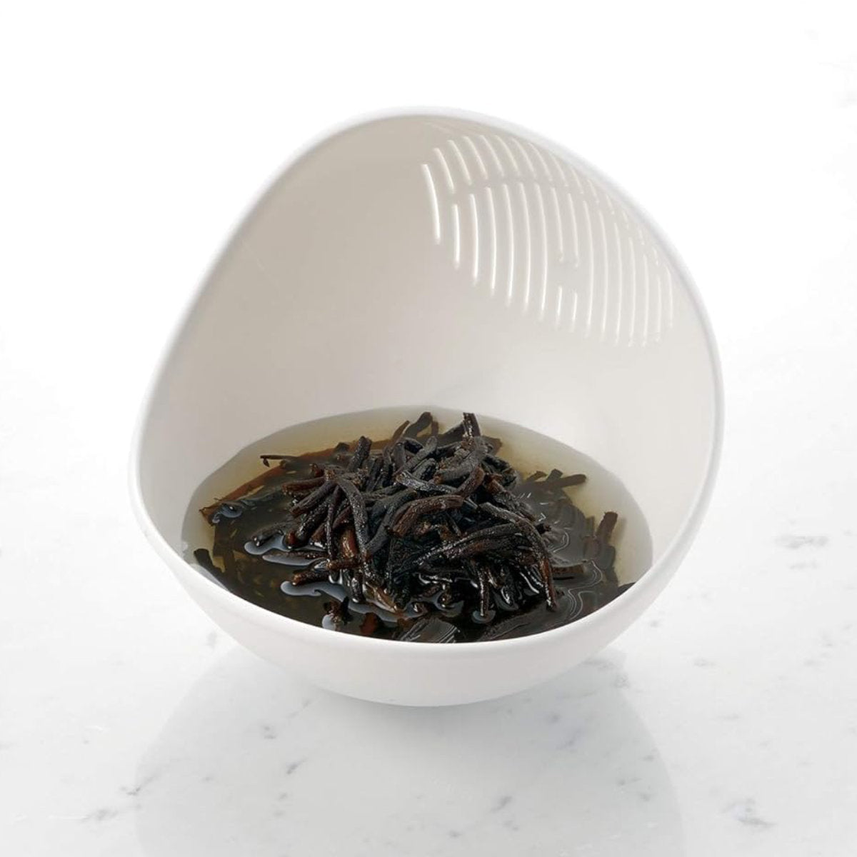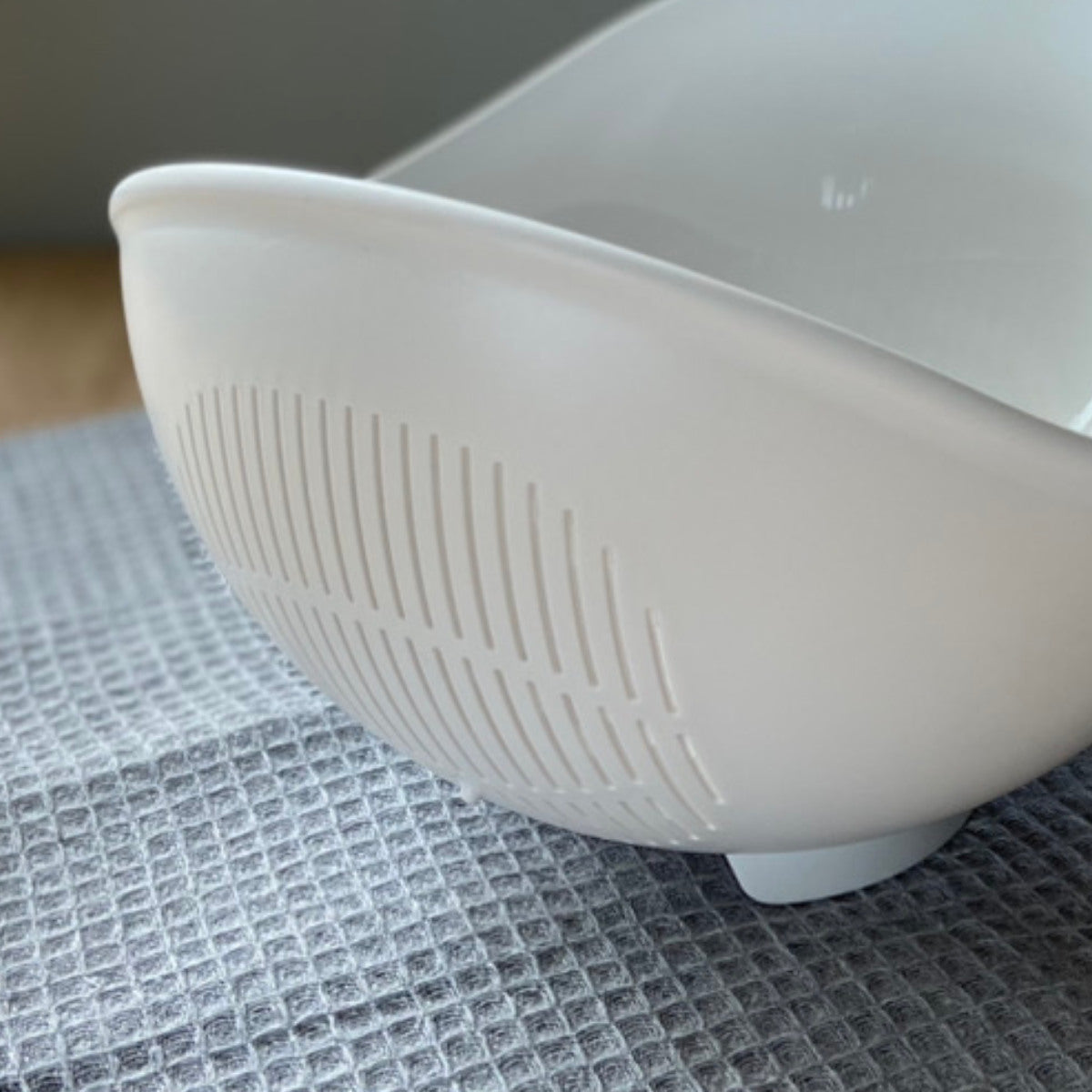 水がサッと切れるように、線状のスリットが入っています。米粒が目詰まりしにくい形状なので、米とぎボウルとしても便利にお使いいただけます。