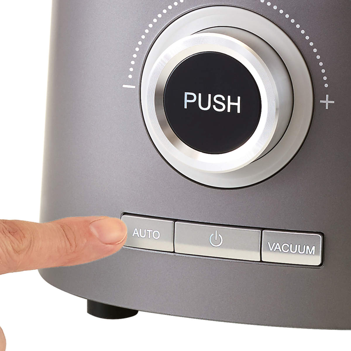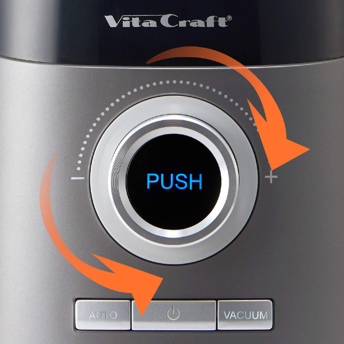 AUTOボタン1つで真空化からブレンドまで全ておまかせ、誰でもかんたんにお使いいただけます。ダイヤルを回して、お好みの速さで仕上がりを調節することができます。